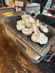 自分達で、採取して洗わずそのまま炭火で焼いて食べます。